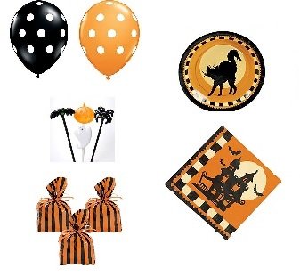 Halloween Party Set - Plates Napkins Balloons Goody Bags Picks